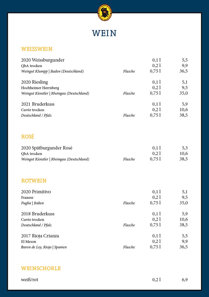 und Speisekarten